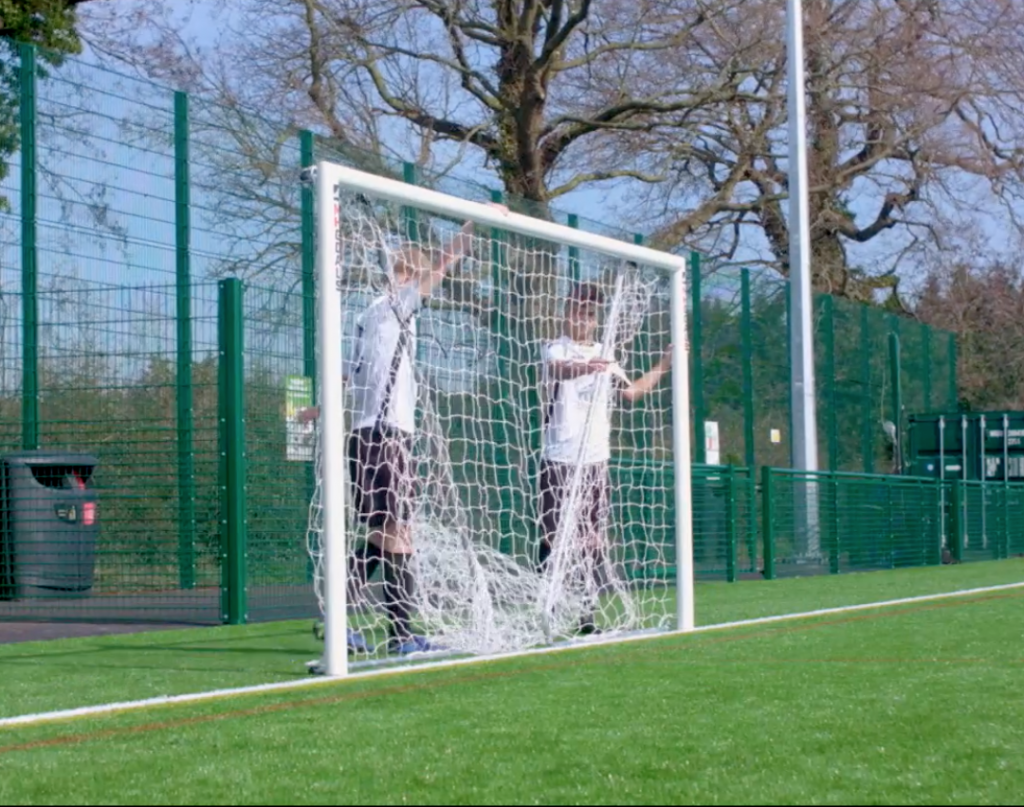 - Folding frames with spring clip system, simply remove the back bar to fold the goal flat