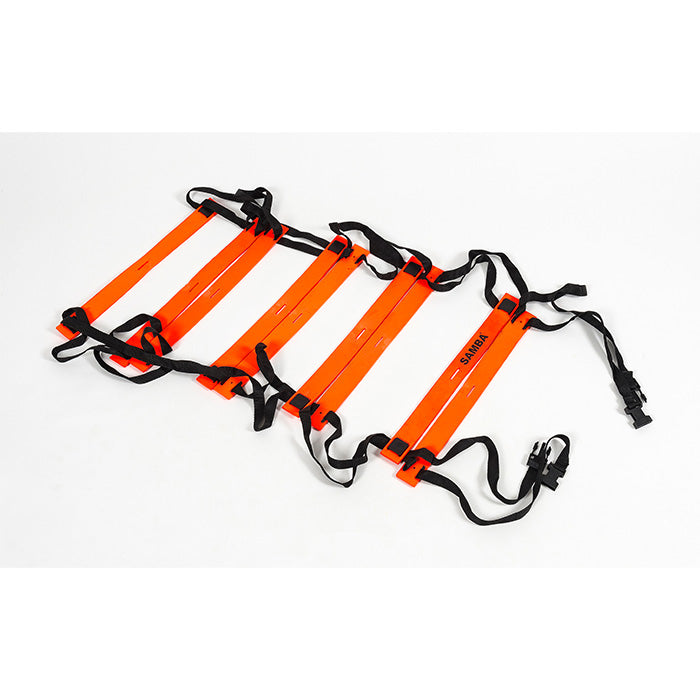 Samba 4m Flat Profile Non-Slip Speed Ladder. Fixed rung 4m speed ladder with drawstring bag. The Samba 4m speed ladder features clips on either end so more than one speed ladder can be fastened together to create 8m, 12m lengths etc.