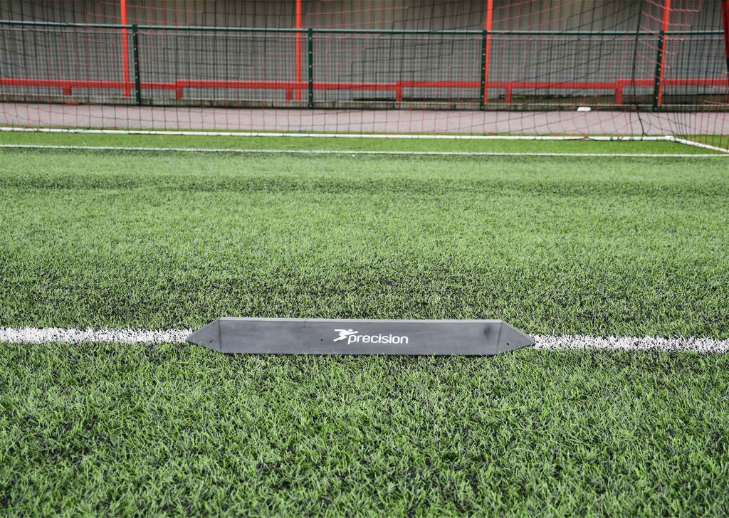 Heavy duty rubber ball deflector for Goalkeeper training. The deflector is placed in front of the goal and the angular side of the defector deflects shots at the Goalkeeper to test their reactions to various deviations for the ball.