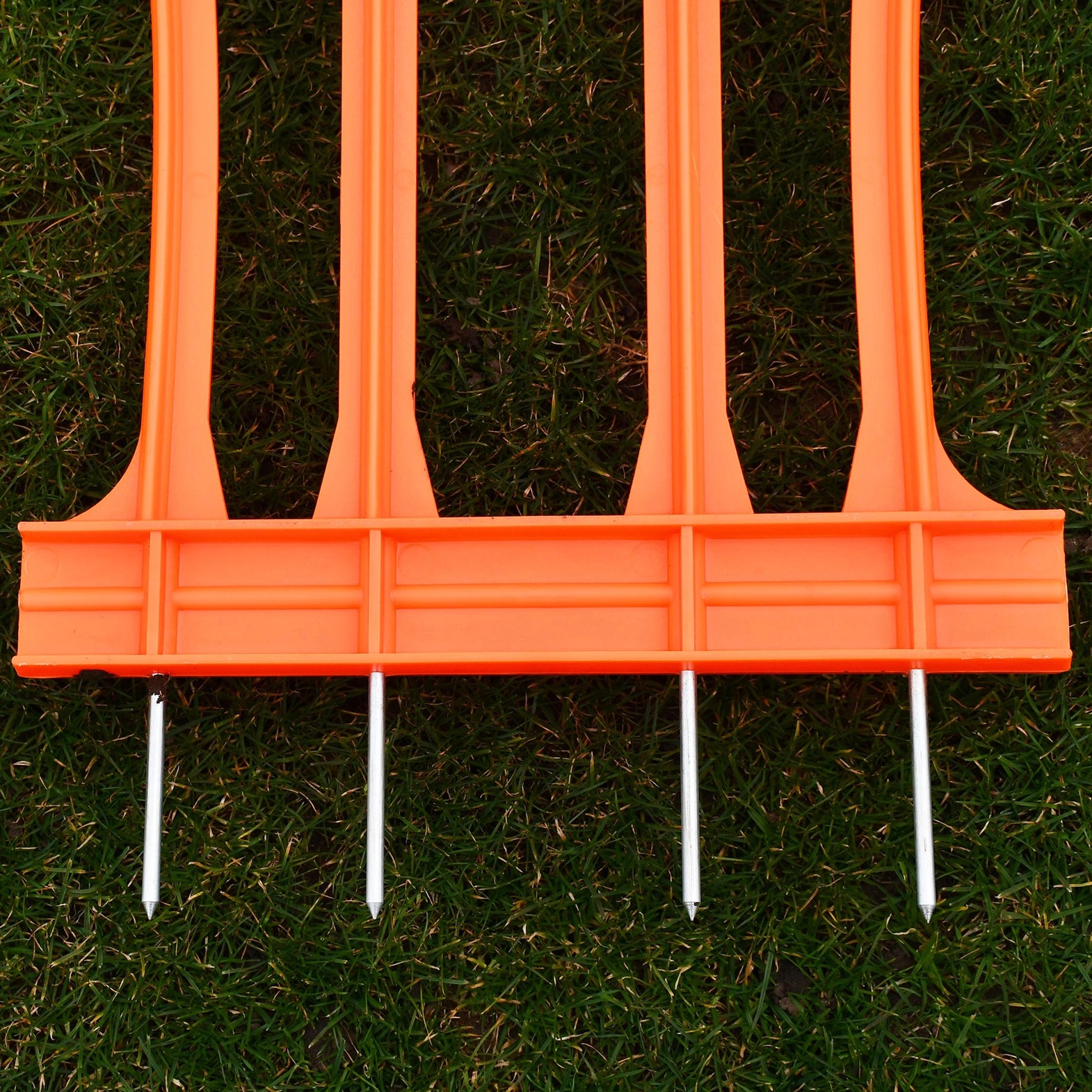 - 4 galvanised steel spikes on the base allow easy positioning on the grass.