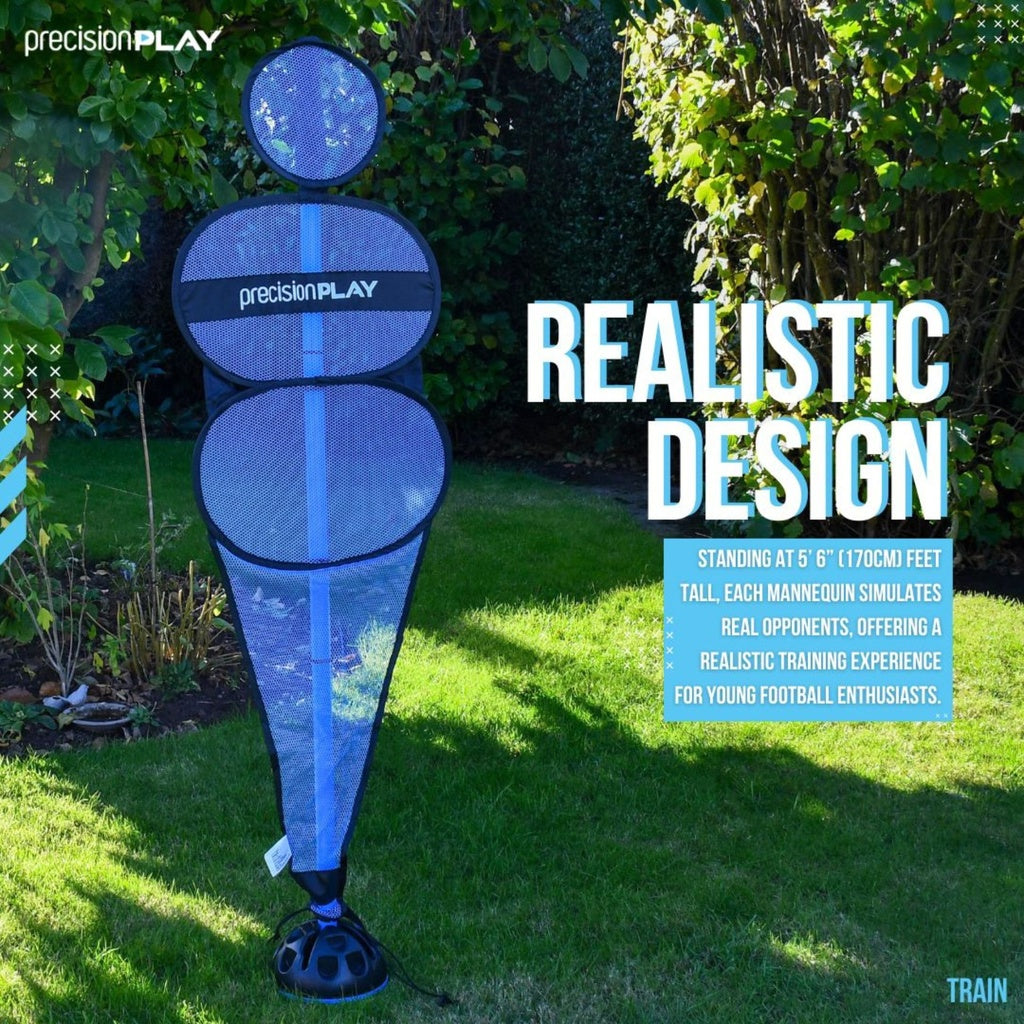 Transform your garden into a mini football pitch with the PrecisionPLAY "Pop Up" Mannequin Set! Specially designed for young aspiring footballers, this set of 3 free kick mannequins brings professional-level training right to your Garden. Perfect for kids aged 6 and up, these versatile and easy-to-setup mannequins are ideal for practicing free kicks, improving shooting accuracy, and developing Football skills in a fun and engaging way.