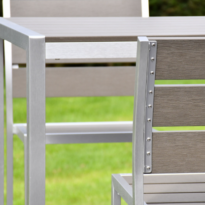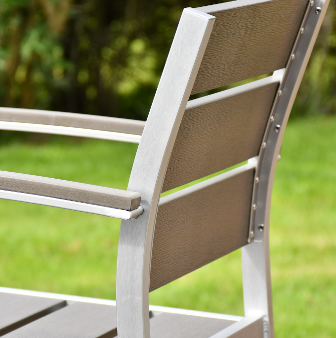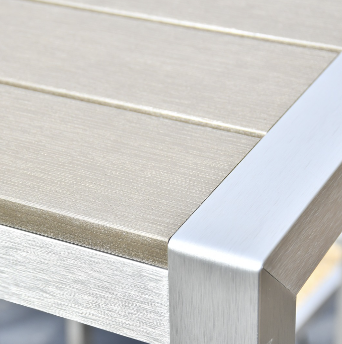 Introducing the SAC Deluxe Brushed Nickel 5pc Bar Set, a sophisticated addition to elevate your outdoor living. Crafted with an aluminum frame, this set boasts a waterproof design, ensuring durability and style for your patio, outdoor hotel, resort, leisure garden, dinner setting, or outdoor restaurant. Embrace comfort and style outdoors with the SAC Deluxe Brushed Nickel 5pc Bar Set where quality craftsmanship meets timeless design. Transform any space into a luxurious retreat with this meticulously crafted furniture ensemble.